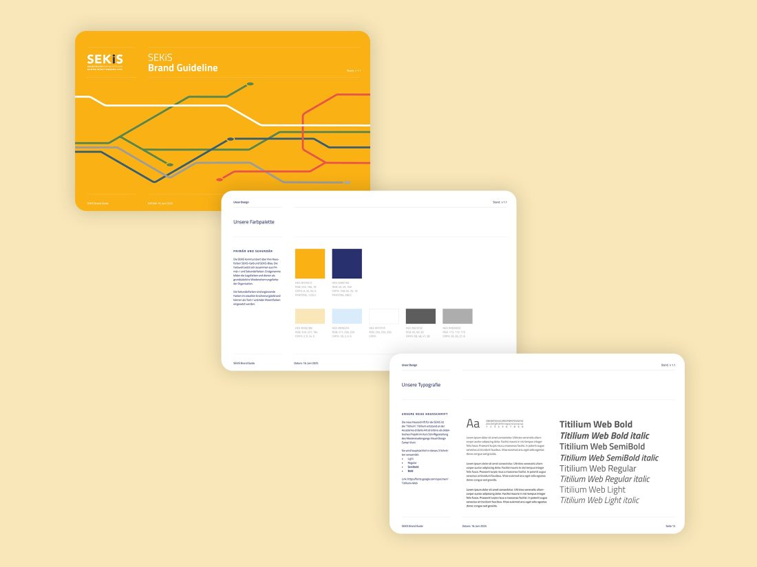 Unsere Aufgabe bestand in der Überarbeitung des Logos sowie in der Entwicklung eines einheitlichen Corporate Designs. Die neue SEKiS-Typografie basiert auf dem Schriftbild der AVENIR. Im Zuge des Redesigns wurde insbesondere das kleine „i“ überarbeitet, sodass es sich nun harmonisch in das visuelle Erscheinungsbild einfügt.