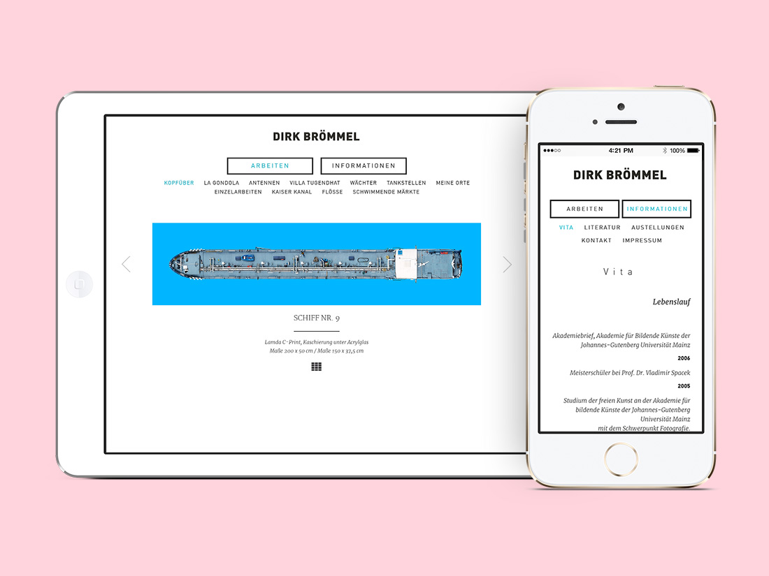 Der bekannte Wiesbadener Fotograf Dirk Brömmel beauftrage WIESBADEN AM MEER mit der Neugestaltung seiner Website. Ziel war ein moderner, zeitgemäßer Auftritt und die perfekte Abbildung seiner Werke auf verschiedenen Endgeräten. Die technische Umsetzung erfolgte in Redaxo.