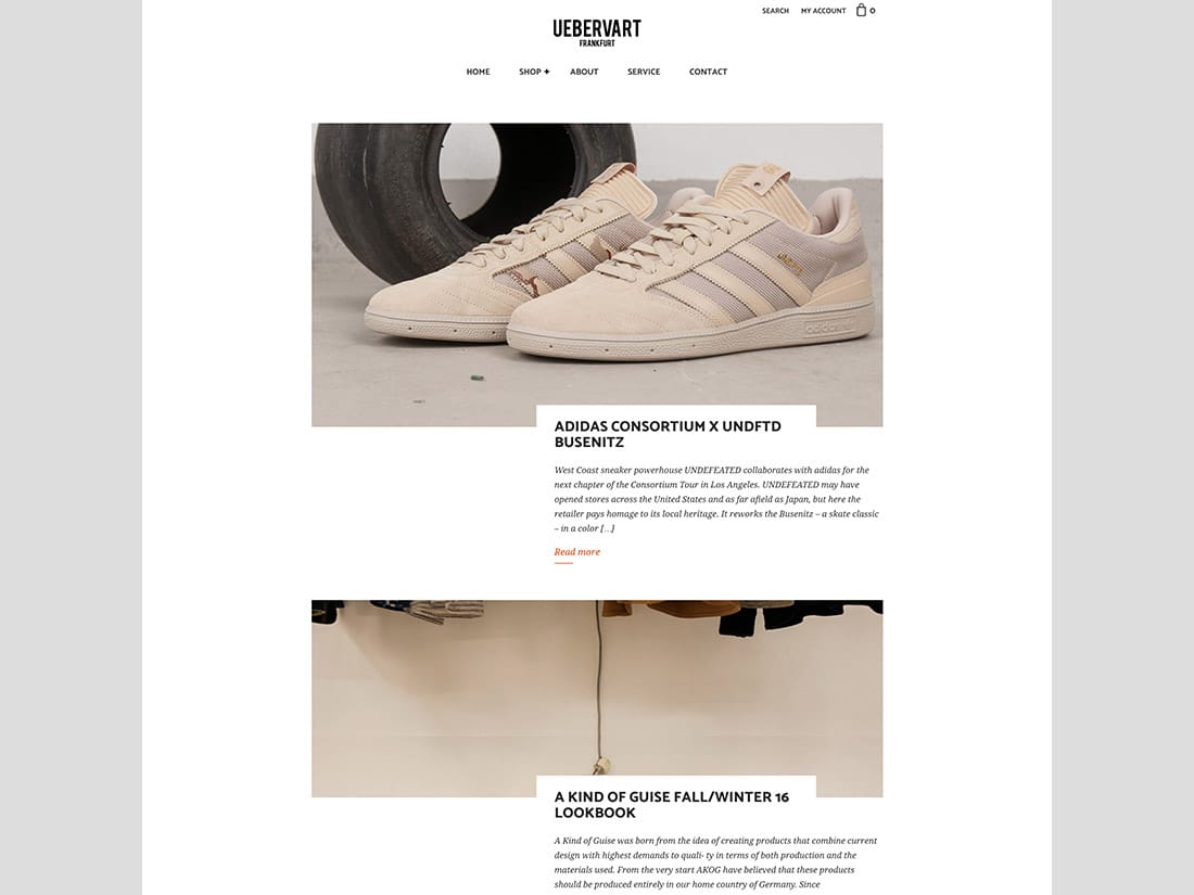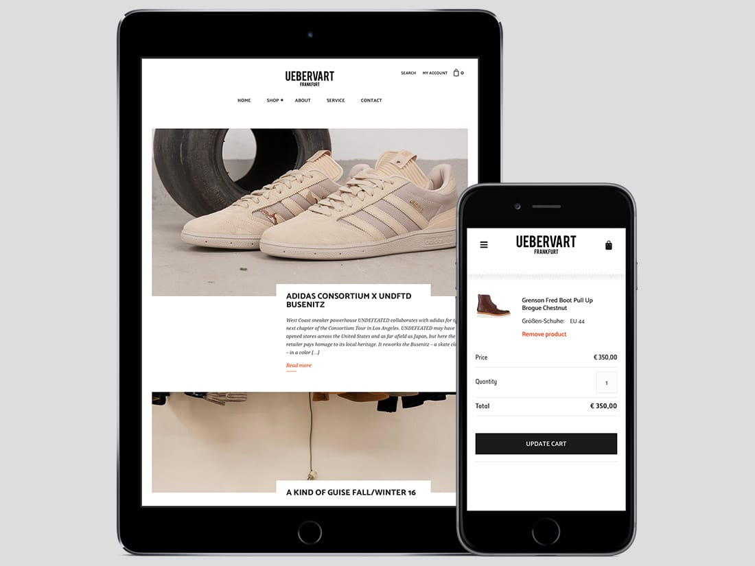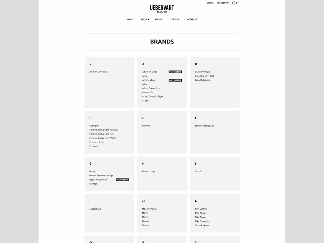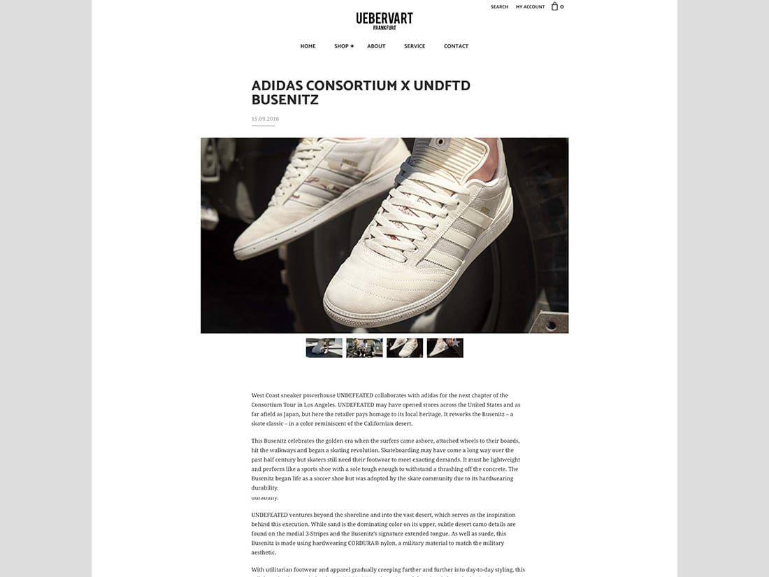 WIESBADEN AM MEER ist nun schon seit Jahren mit der Betreuung des Online Shop von UEBERVART beauftragt. Das Redesign sollte den langsamen Übergang von einem Shop, zu einer coolen, informativen Modeplattform zu schaffen, ohne den Shopping-Gedanken zu vernachlässigen. Das Layout war schon immer klar und einfach. Doch es sollte noch cleaner werden. Alle nicht benötigten Elemente wurden entfernt und die Usebility weiter verbessert.