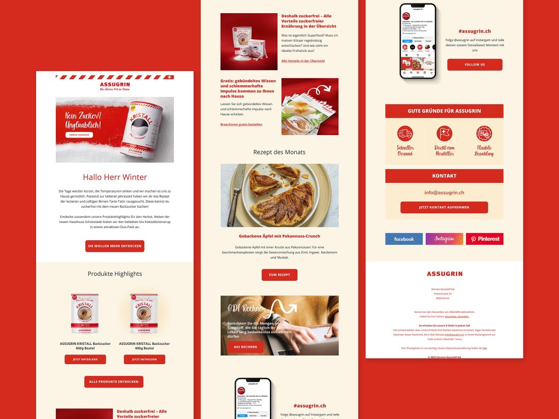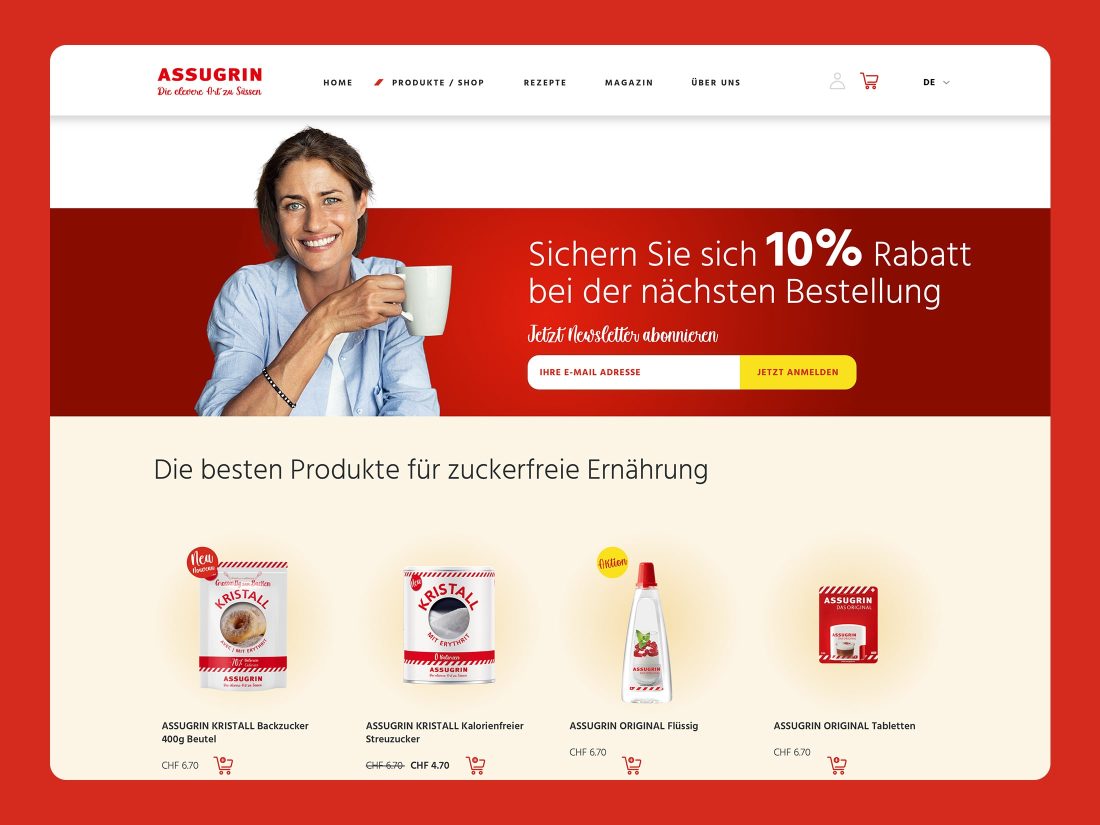 Aufgabe der Hermes Süssstoff AG aus der Schweiz war die visuelle und technische Überarbeitung der Website und die Zusammenführung der Website mit dem Onlineshop in eine WordPress / WooCommerce Umgebung auf Basis eines MODULARTE / WordPress Framework. Ziel des Projekts war die Optimierung der User-Experience und Conversion Rate. Die neue Webseite bietet Kunden eine einfache Möglichkeit, Produkte von Assugrin zu bestellen und gleichzeitig mehr über das Unternehmen und seine Geschichte zu erfahren.